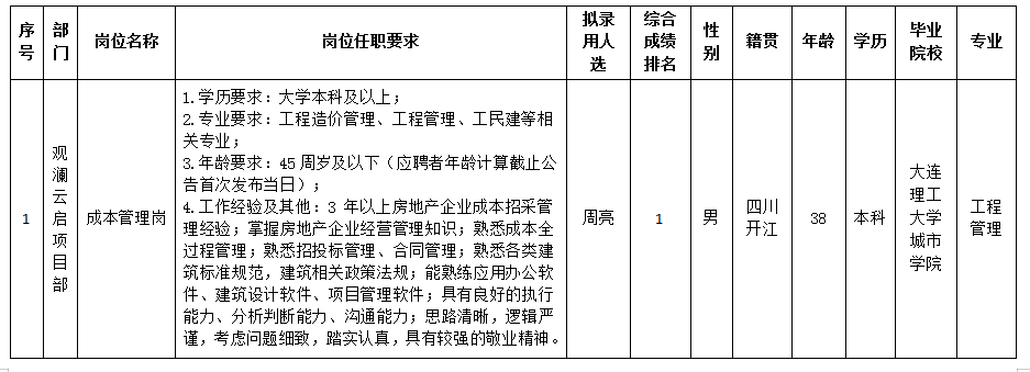 【公開(kāi)招聘】綿陽(yáng)市綿投置地有限公司關(guān)于招聘成本管理崗位擬錄用人員的公示